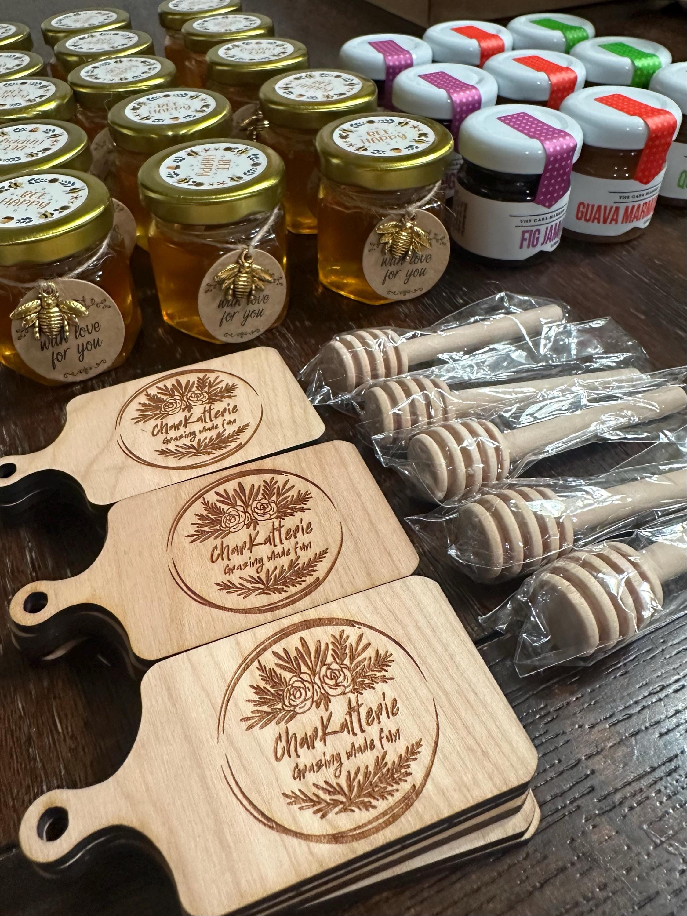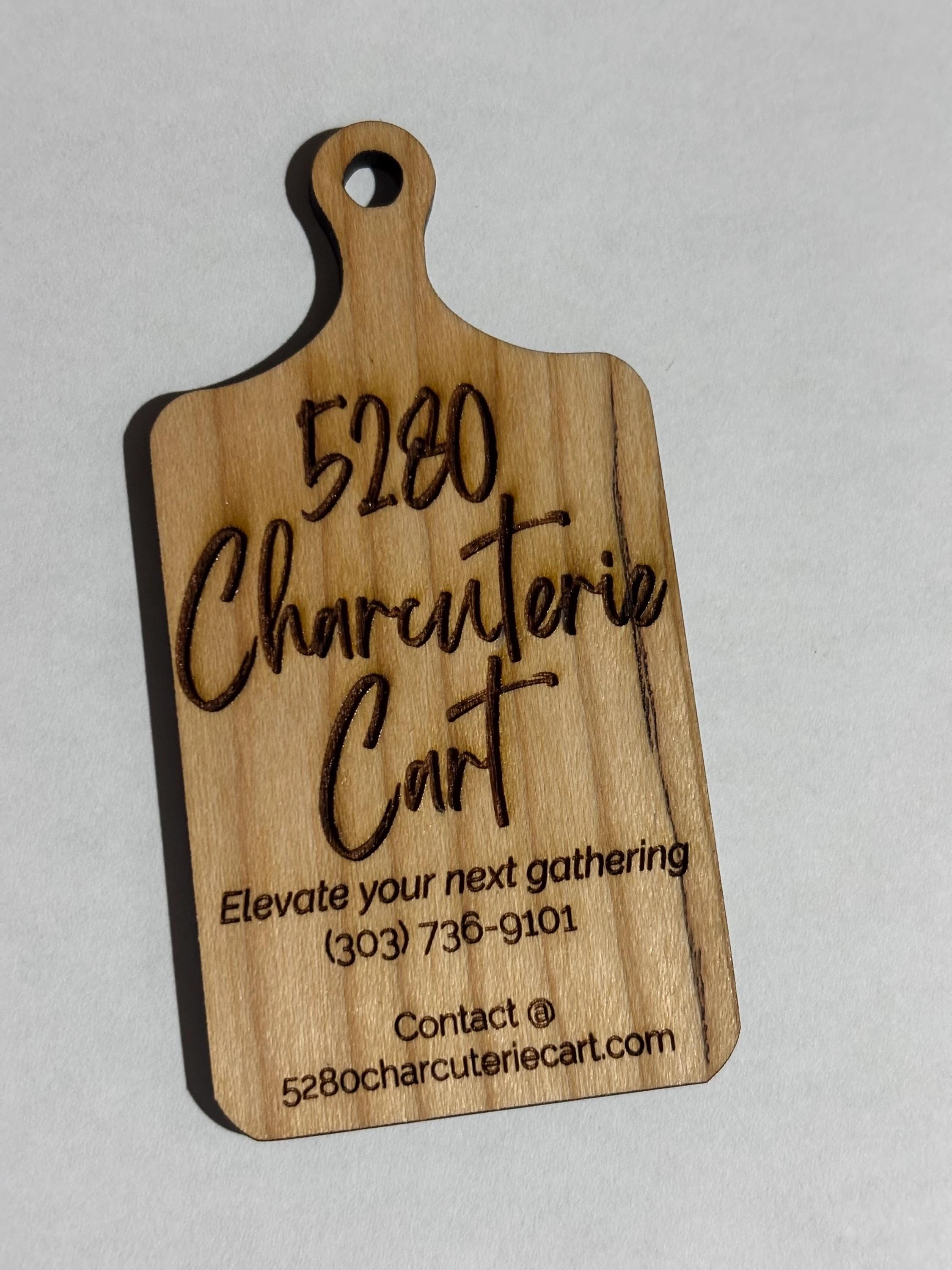 Wood Business Cards: Handcrafted from 1/8th-inch cherry wood, these are expertly cut and engraved with precision. Choose single or double-sided with this option.
